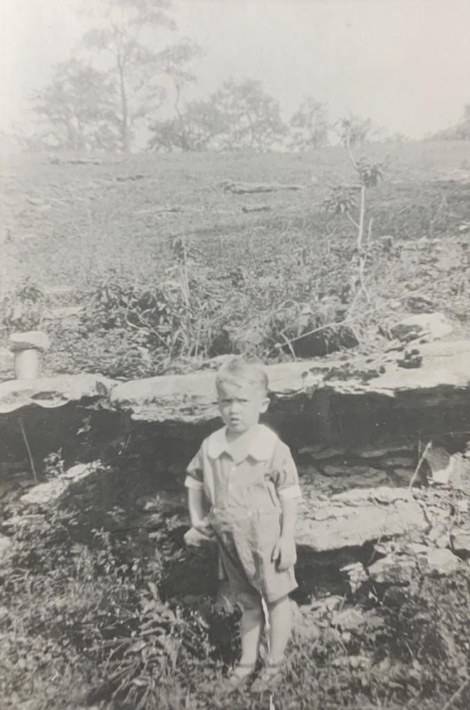 As another in this series, here is young Robert Ira Mathews, my uncle, at the same rocky crag as the other images. This image is circa 1935 based on the other artifacts of the same period. The Jessamine Creek spring was an integral part of my father’s family life growing up on the farm. More of those stories to come…