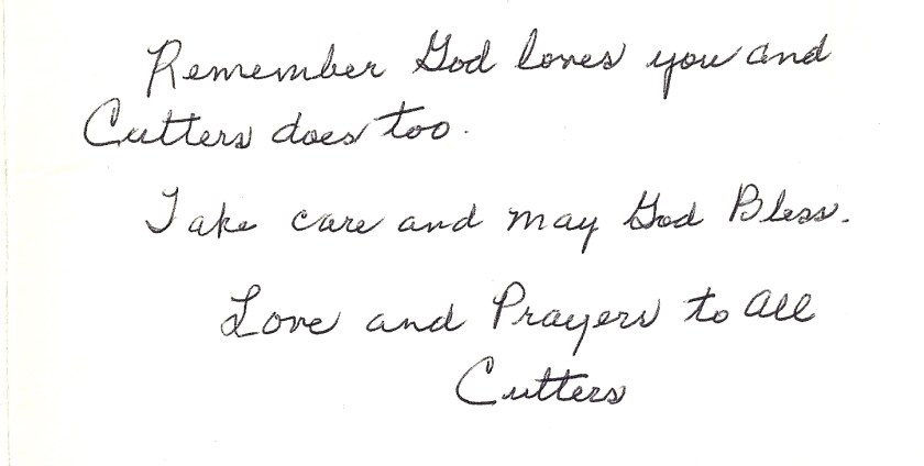 I found this book helpful in clarifying some answers to questions that were eluding me. And, numerous opportunities to read between the lines of love. Cutters’ love.